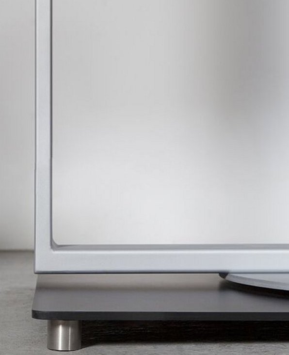 schwarz pulverbeschichtet) und einem drehbarn Stahlrahmen (alusilber pulverbeschichtet)